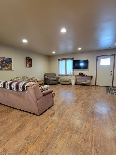 We offer two distinct lodging options along the Bluffs of the Lewis and Clark Lake tailored to accommodate different group sizes, ensuring a comfortable and enjoyable stay for everyone. Our cozy 2-bedroom lodge features a beautiful open kitchen and a welcoming living room, perfect for small groups. For larger groups, our spacious 4-bedroom lodge provides ample room with a generous living room and kitchen, allowing everyone to relax and socialize together. Both lodges are equipped with Smart TVs and internet access, ensuring you stay connected and entertained during your visit. Also, both lodges come fully equipped with bedding, towels, a refrigerator, microwave, coffee pot, toaster, pots and pans, plates, cups, bowls, and silverware, making easy to feel at home. All the lodges have access to an awesome gazebo equipped with a TV, gas fire pit, pellet grill, and blackstone grill.